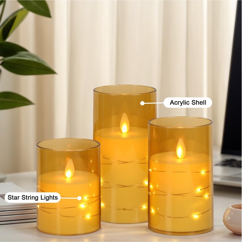 - Enchanting Starry Glow: These flameless LED pillar candles feature an embedded star string, casting a magical, soft glow that mimics a starry sky, perfect for creating a relaxing and whimsical atmosphere in any room