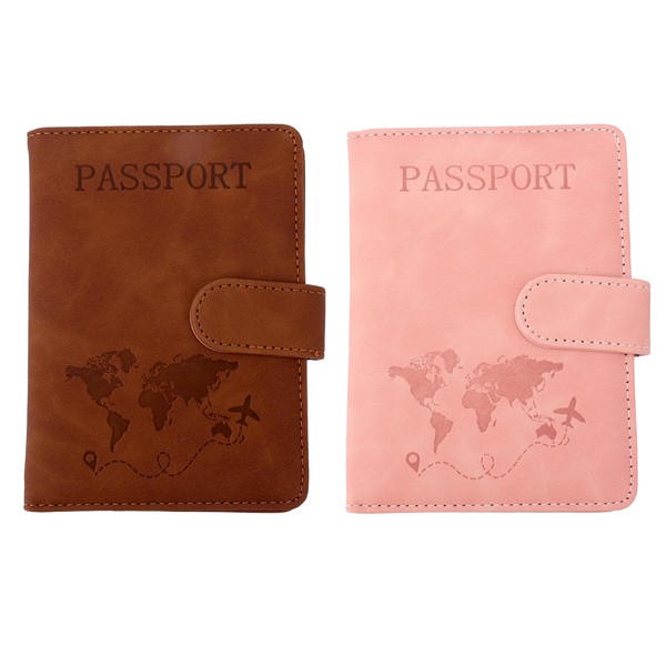 lasuroa 2 Passport Covers, Waterproof Wallet Case for Passport Covers with Magnetic Closure, Essential Travel Accessories for Men and Women (Pink & Brown)