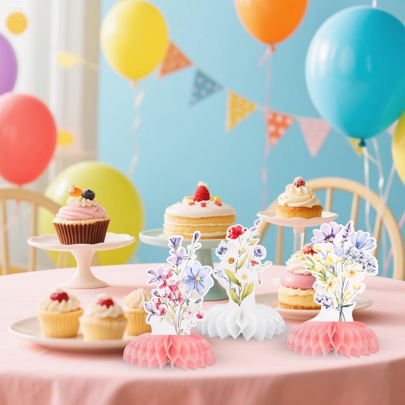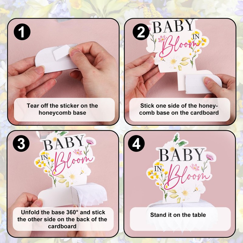 - Special Design: This baby shower decoration is printed with floral patterns on both sides, with a colorful gradient effect; the bottom adopts a honeycomb three-dimensional design to enhance the stability of the ornament, so it can stand firmly on the table and easily create a party decoration.
