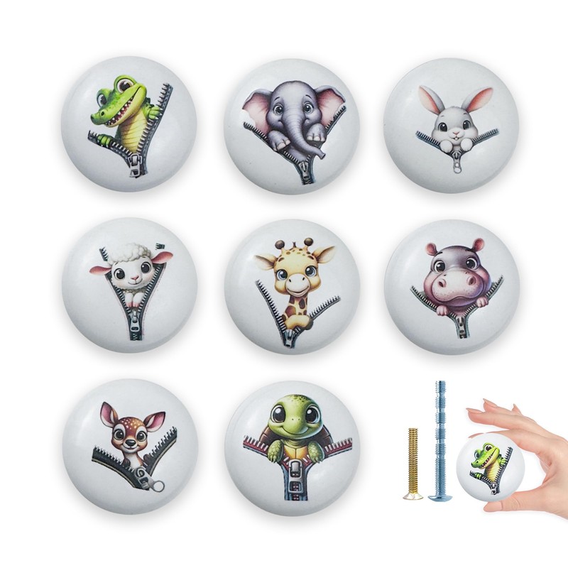 Lasyman 1.5" 8 PCS Fun Safari Animal Cabinet Knob Ceramics Decorative Nursery Children's Room Wardrobe Dresser Drawer Handle Pulls