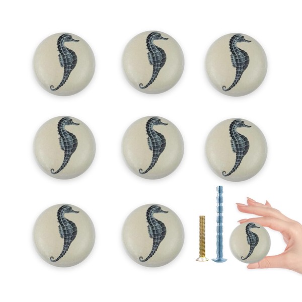 Lasyman 8 Pack 1.5" Ceramic Seahorse Cabinet Knob Unique Ocean Theme Decorative Cabinet Dresser Drawer Pulls Handles and Knobs