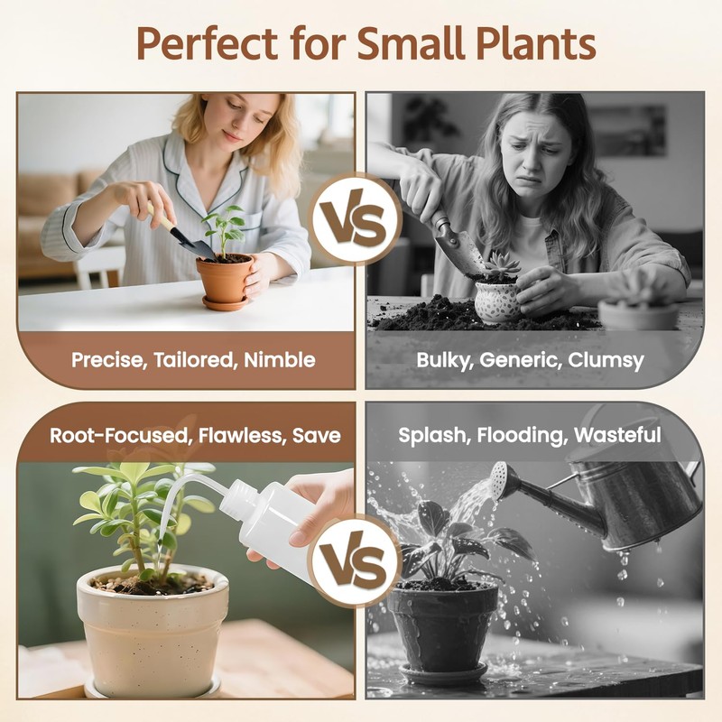 - 【No More Soaked Leaves】Targeted watering, made simple. The fine-tipped squeeze bottle delivers water straight to the roots—no splashing, no soggy leaves. Ideal for succulents, seedlings, and moisture-sensitive plants that thrive with precise hydration—helping plants grow stronger with every drop.