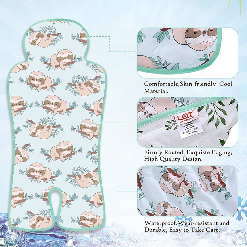 LAT Gel Car Seat Cooler Pad,1 Pack Double Sides-Universal Baby Stroller Ice Cushion Cooler Mat,Multifunctional Summer Cooling Seat Liner for Baby Dining Chair,Child Safety Seat(Green leavesP+Sloth)