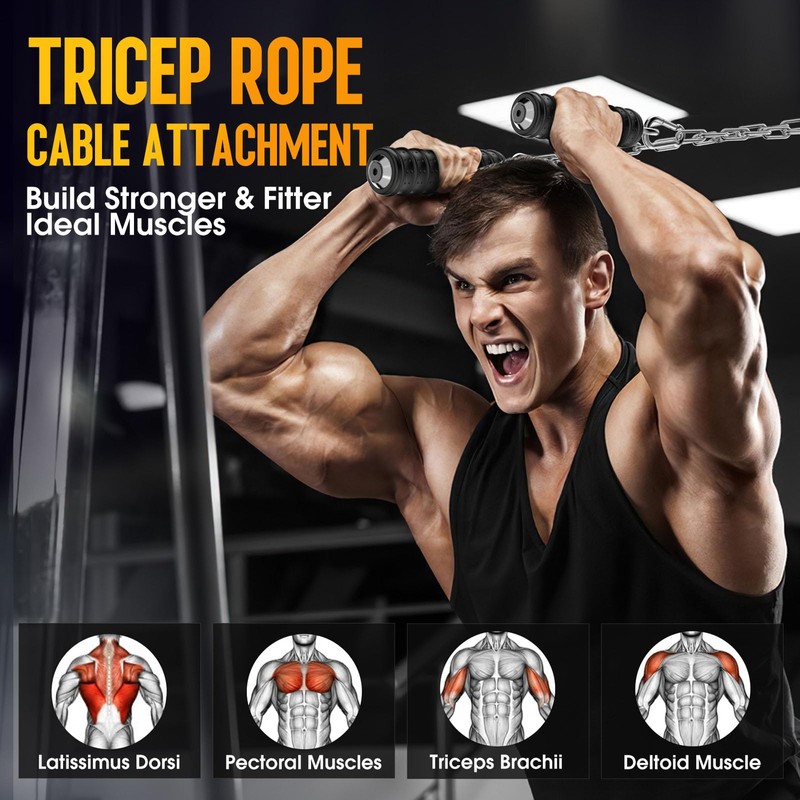 - Triceps Rope Attachment: This gym handle is designed for triceps, and its unique structure ensures precise stimulation of triceps during training for muscle building and shaping, you can also use it for biceps, shoulder deltoids, latissimus dorsi and other core muscles