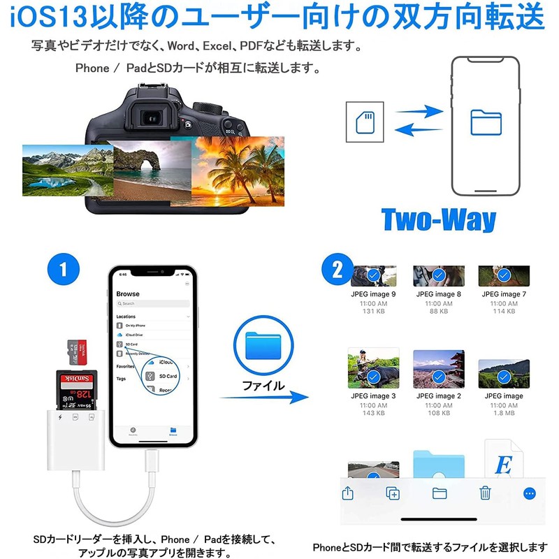 - ✔【Fast Data Transfer】The transmission speed can reach 14MB/S-16MB/S. So you can easily transfer photos and videos to your iPhone or iPad. This is the best way to copy photos and videos to your smart device in a short time. Great for anyone who loves photography. Note: It supports bi-directional data transfer when iOS 14 or later. Note: If the system cannot read NTFS format, please change the card/USB format to exFAT or FAT32. TOUGH SD/SD (wifi) cards are not currently supported