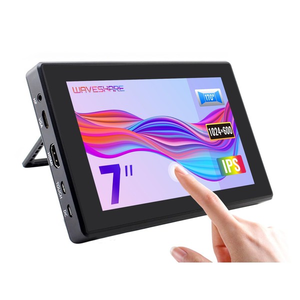 [Latest Version] Waveshare 7inch Capacitive Touch Screen LCD Monitor for Raspberry Pi 5 RPi 400 4 3 Model B Compatible with All Versions of Raspberry Pi Windows with HDMI/VGA Port with Case