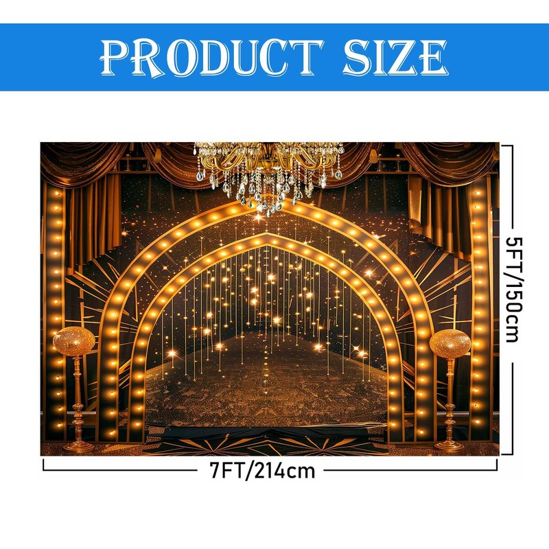 - 【Size】: The size of the Golden Stage Backdrop is 7x5FT(WxH) / 2.14m x1.5 m.