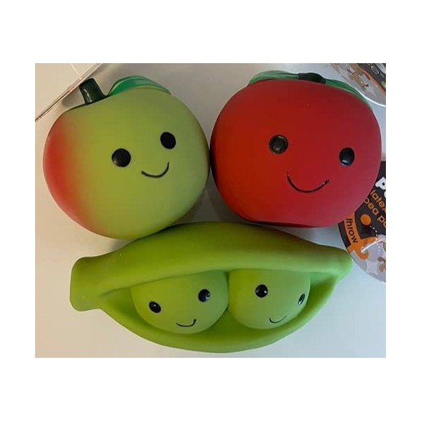 - Contains 3 different toys (Apple / Tomato / Peas)