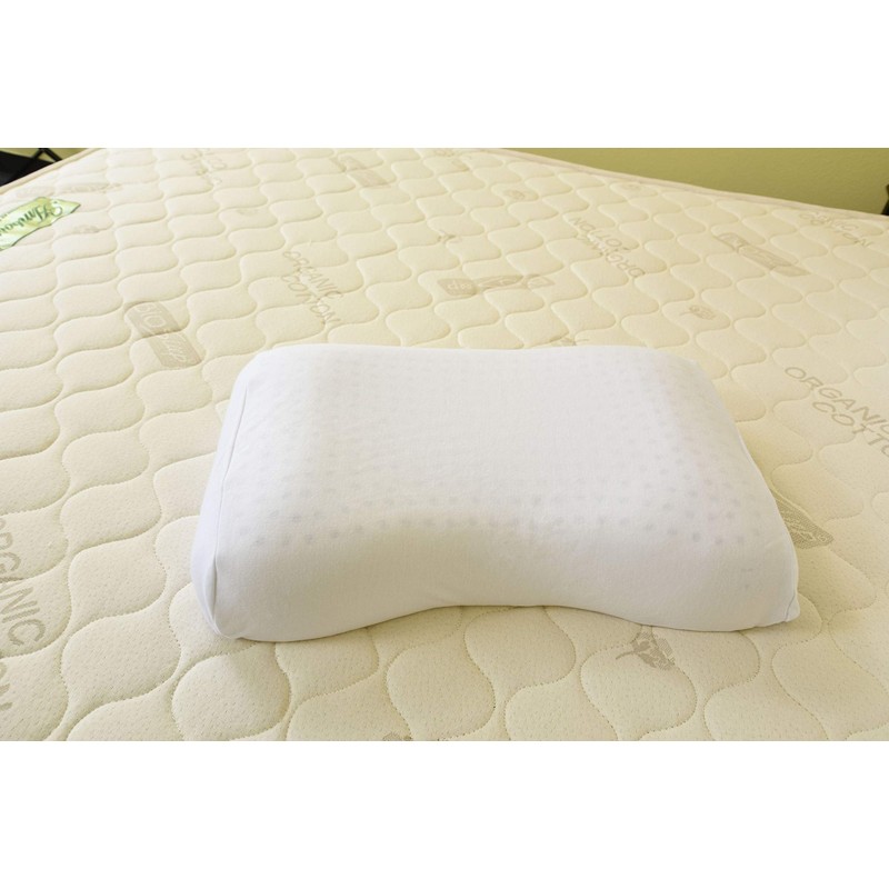 The Latex Neck Contour Pillow provides superior posture support and unmatched sleep comfort. The Latex Neck Contour Pillow helps alleviate pain and tension making this pillow the perfect choice for those suffering from back or neck injuries. Supportive and breathable with a 100% organic cotton cover. Made of 100% certified natural dunlop latex with absolutely no synthetic materials or blends.