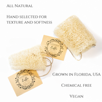 Elevate your cleansing routine with our all-natural luffa sponges, sustainably grown by a small business in sunny Florida. Each sponge is free from chemicals and plastics, hand-selected for its exceptional texture and softness. Designed to provide gentle exfoliation, these sponges are perfect for cleansing without compromising your skin barrier. Available in two versatile styles: the larger body sponge for effortless all-over cleansing and the smaller facial sponge with a more tapered shape, designed to easily reach areas like around the nose and behind the ears. Small-Business Grown: Proudly cultivated by a small business in Florida, supporting local and sustainable practices. Gentle and Natural: Provides light exfoliation with all-natural fibers that are kind to your skin. Hand-Selected Quality: Each sponge is chosen for its ideal texture and squeezable softness, ensuring a premium experience. Two Functional Styles: A larger body sponge for full-body cleansing and a smaller facial sponge for precise, delicate areas. Sustainable Choice: Made from natural fibers, offering a practical alternative to synthetic sponges. Care Instructions:Rinse thoroughly after each use and air dry in a well-ventilated area. Replace every 4-6 weeks or as needed to maintain freshness and hygiene.Luffa | Lightly Exfoliating | Body Sponge