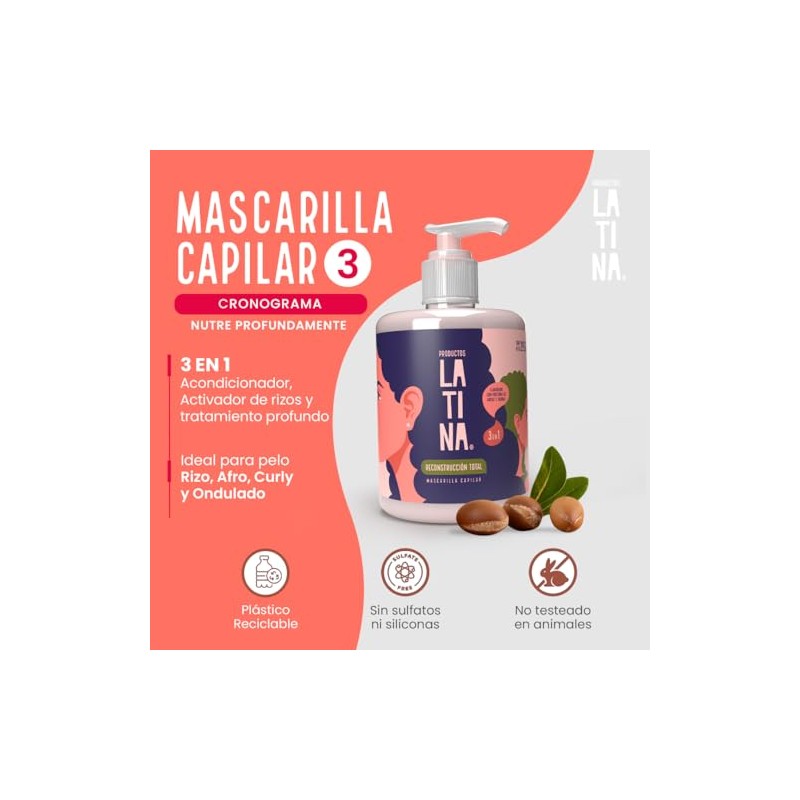 🌟 ⭐ LATINA® | Mascarilla para Cabello - Reconstrucción Total | Crema para Peinar Activador de Rizos | Proteína de Arroz y de Jojoba - Aloe Vera y más | Belleza Mujer - Tratamiento para Cabello Maltratado ⭐ 🌟