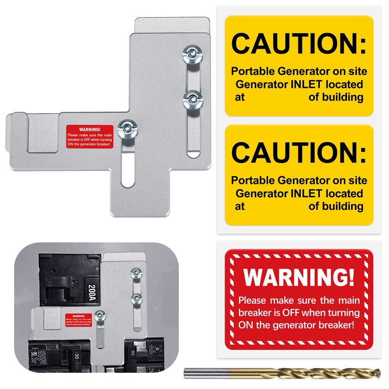 - ⭐️Package Content: Interlock x1; safety labels x6; 11.8''generator breaker retainer straps x2; 3/16 drill bit x1; Installation guide x1