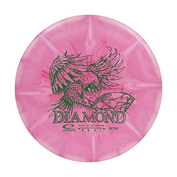 - FLIGHT RATINGS- The Latitude 64 Retro Burst Diamond features flight ratings of Speed: 8 Glide: 6 Turn: -3 Fade: 1.