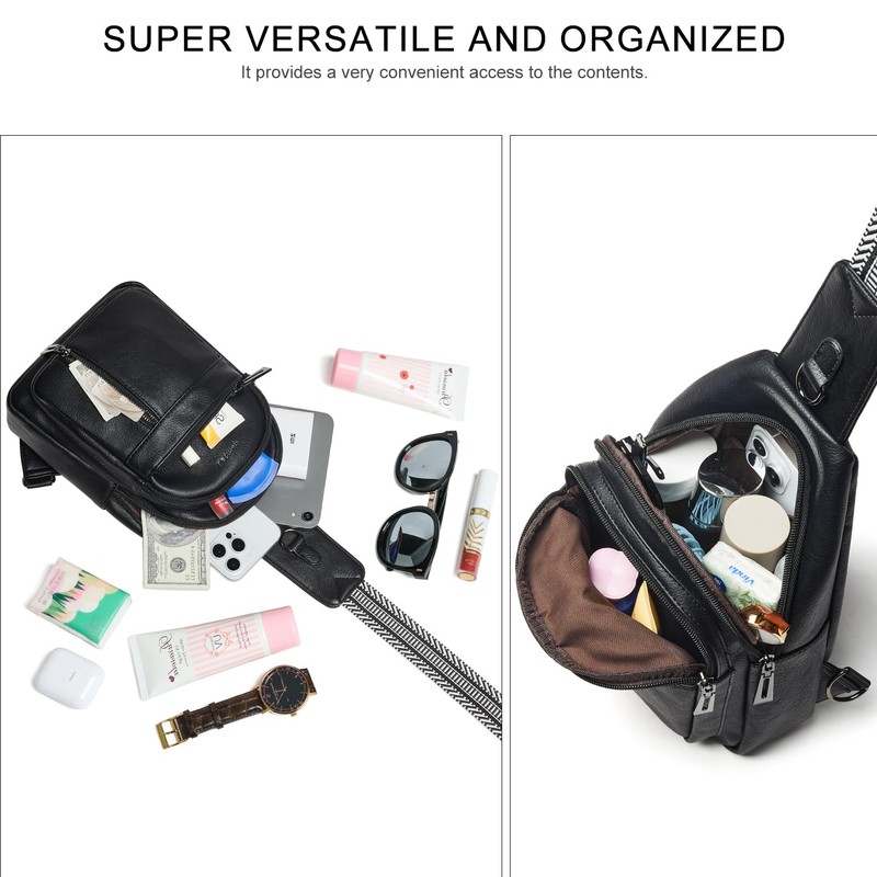 - 【WATERPROOF & DURABLE MATERIAL】The women's bag sling bag is made of soft PU leather with unique texture, which is comfortable and waterproof. And the handmade leather is durable and easy to clean. Equipped with durable metal fasteners and smooth zippers for long-lasting.