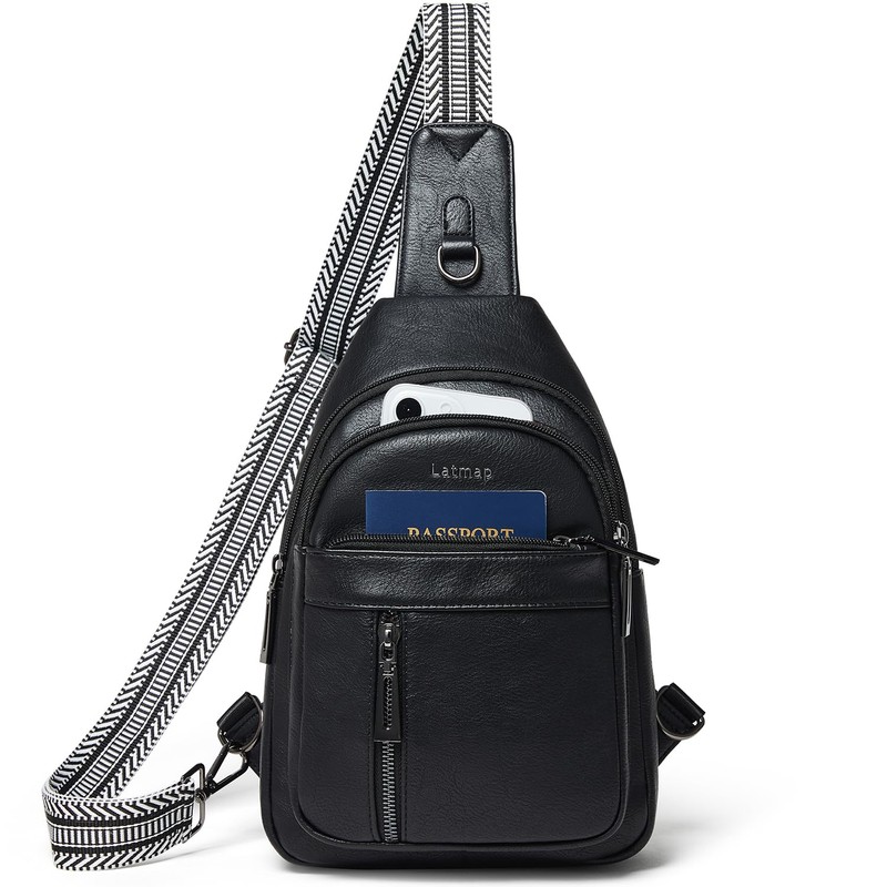 LATMAP LARGE Sling Bag For Women Men Crossbody Shoulder Tote Blet Bags Backpack Fanny Pack Travel Purse Faux Leather Black