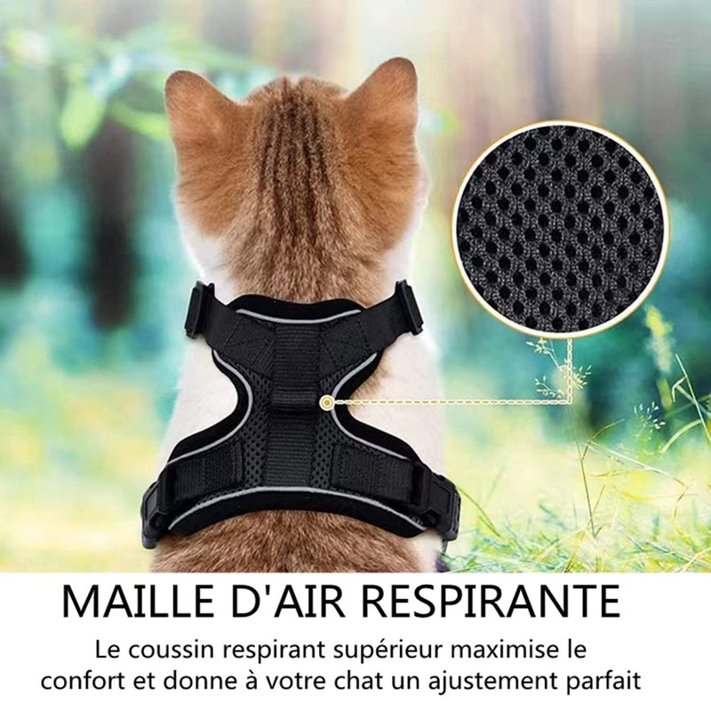 - This cat harness with leash includes the magic strap and rear buckle for a secure closure to prevent the cat from slipping. And the vest style design protects your cat's neck from pulling and tension of a collar. You can now share walks, exercises and pleasant outdoor leisure time with your cat