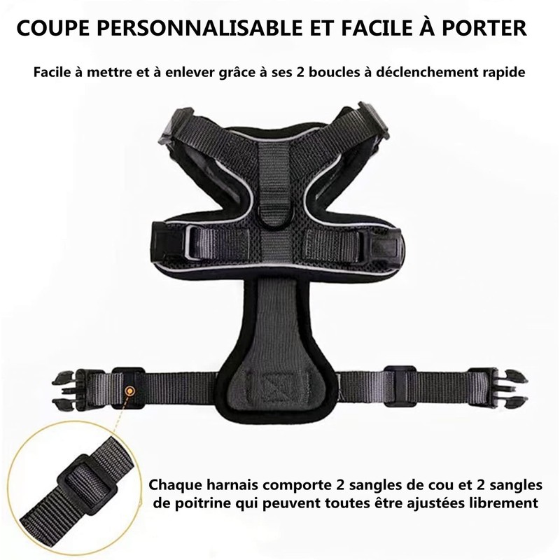 Tie the buckles: adjust the straps to ensure the harness is tight but not too tight. Close the strap with the buckle.