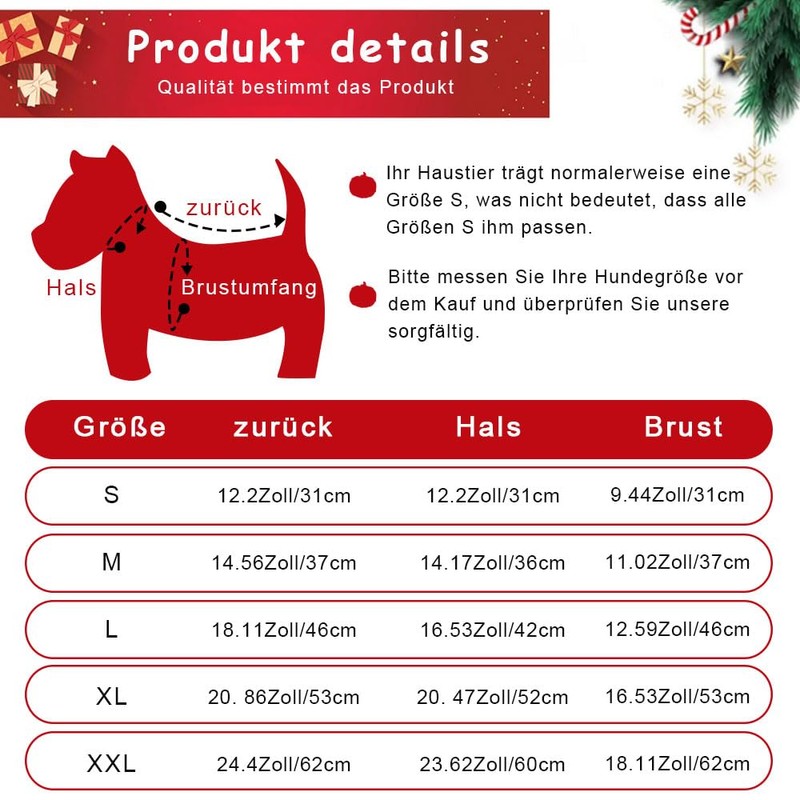 - Suitable size: The Christmas pet jumper is suitable for your pet. You can measure it as shown in the picture to choose the right size. Your baby usually wears size S does not mean that all sizes S fit him. Please check the size information carefully before purchasing.