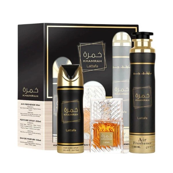 Lattafa Khamrah 3pc Gift Set Perfume 3.4oz EDP + Air Freshener + Body Spray