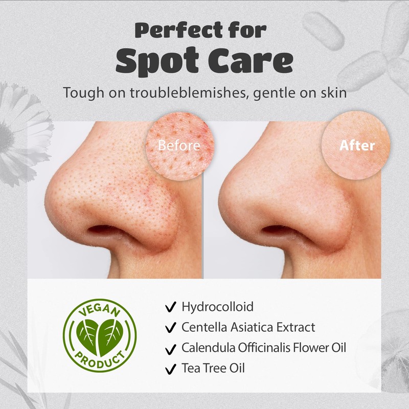 - ✅ SUITABLE FOR ALL SKIN TYPES: The hydrocolloid is vegan and cruelty-free so you can rest assured that you're using products that are both effective and friendly to your skin. Perfect to avoid breakouts before they happen or help them fade faster than usual when they do occur!