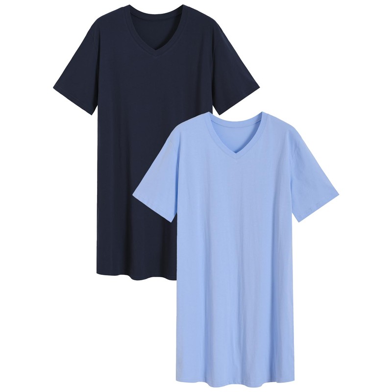 Latuza Men's Cotton Nightshirt Short Nightgown 2 Pack, Navy/Light Blue, Large
