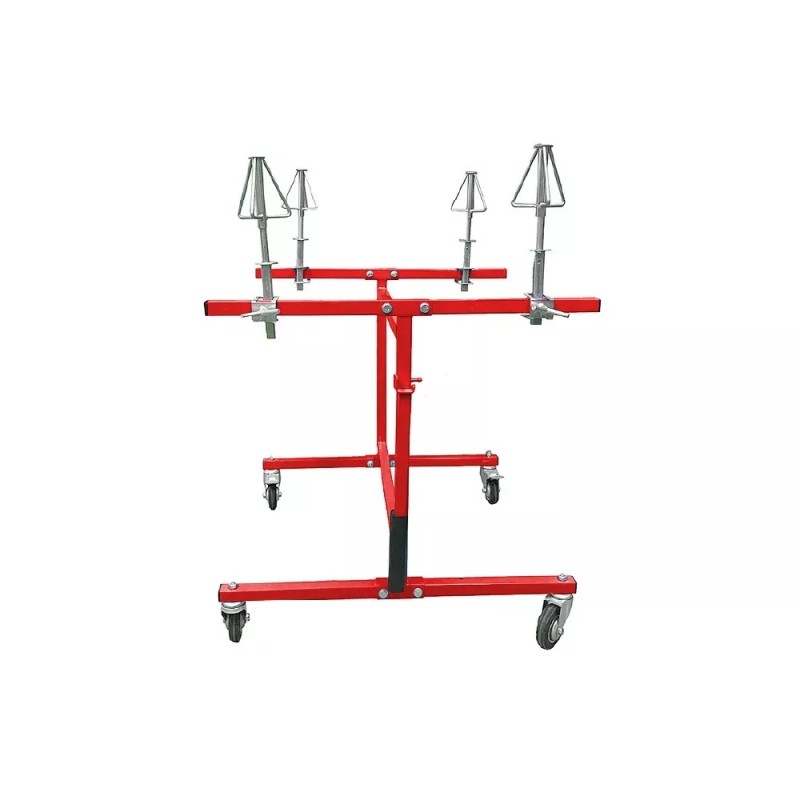 This paint stand will allow the painter to rotate the wheels on the cones so the wheels can be painted completely without the need to lift or reposition the wheel. Both supporting bars and cones have adjustable heights in order to have the most comfortable position