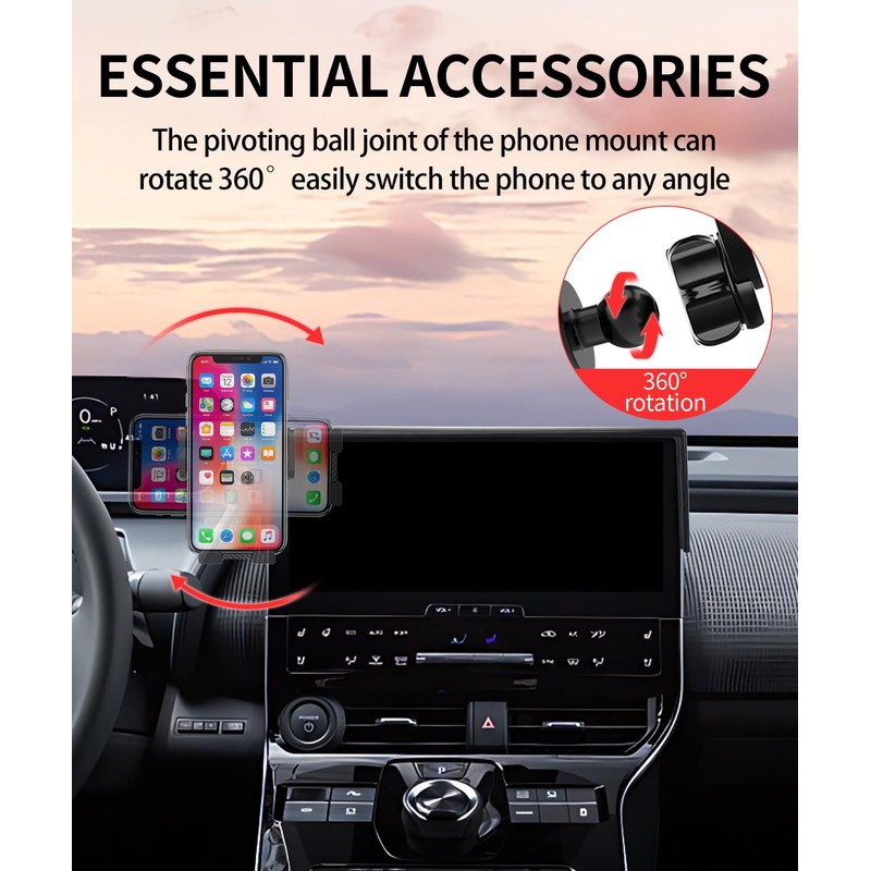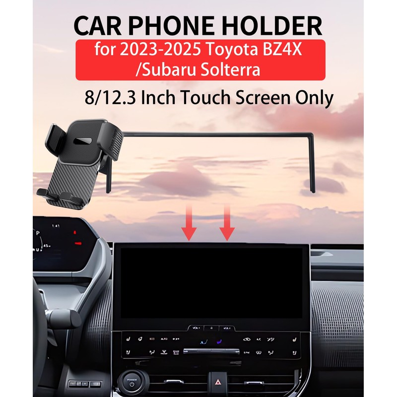 LAUFITMT Car Phone Holder for Toyota BZ4X 2023 2024 2025/Subaru Solterra 2023 2024 2025 Accessories 8/12.3 Inch Screen Fixed Clip Adjustable 360 Degree Rotation Cell Phone Mount Hands Free