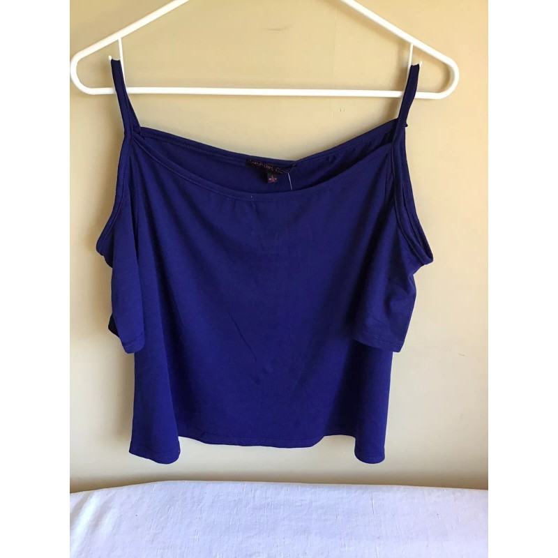Laugh Out Loud Always New Juniors Young Adult Navy Blue Cotton Blend Off The Shoulder Shirt Top Large