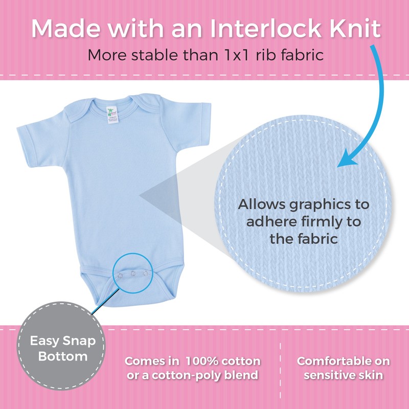 - 65% polyester 35% cotton interlock knit for screen printing, embroidery, applique & sublimation