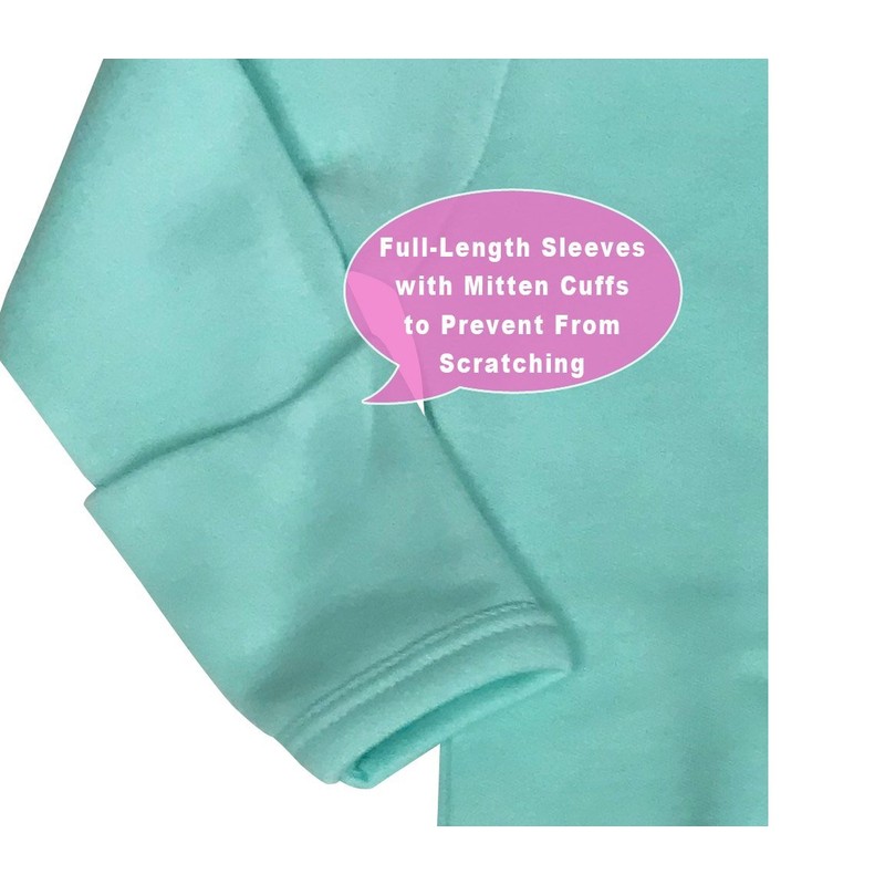 - Protect your little one from scratching themselves with a long-sleeve baby gown with mittens. Elastic bottom allows for an easy diaper change.