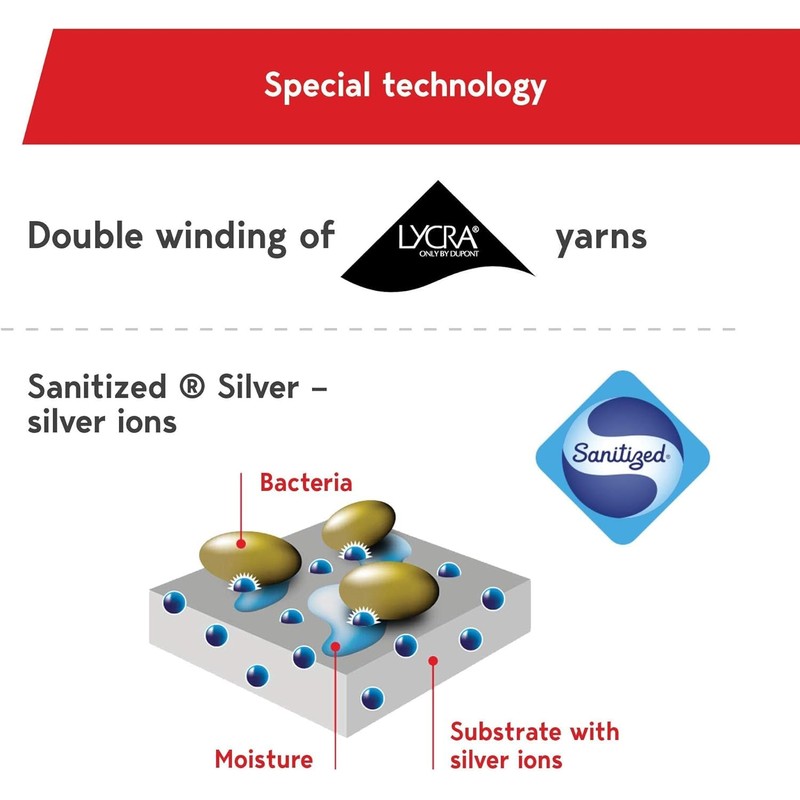 • The toe and heel area is reinforced, which extends the durability of the product. To make it easier to put on the product, use the special silk sock included in the set.