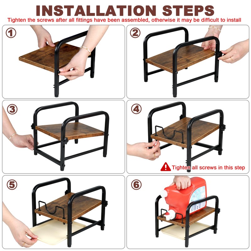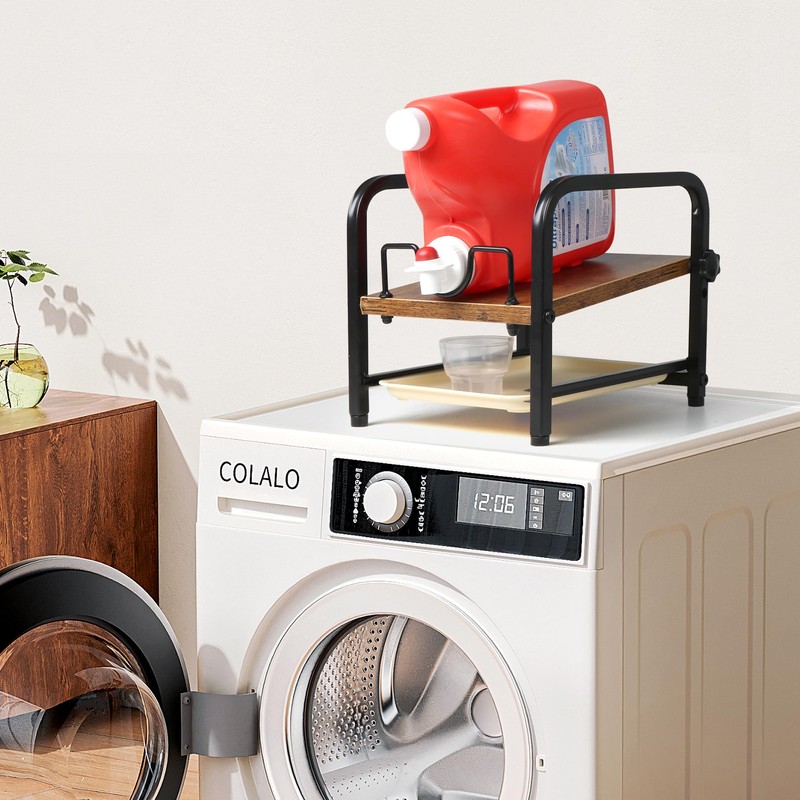 • 【Durable and Versatile】Made of high-quality wood and iron frame, which is sturdy andhas a strong load-bearing capacity to hold large bottles of liquid laundry detergent. It can be used as a laundry room decor to store other laundry supplies.