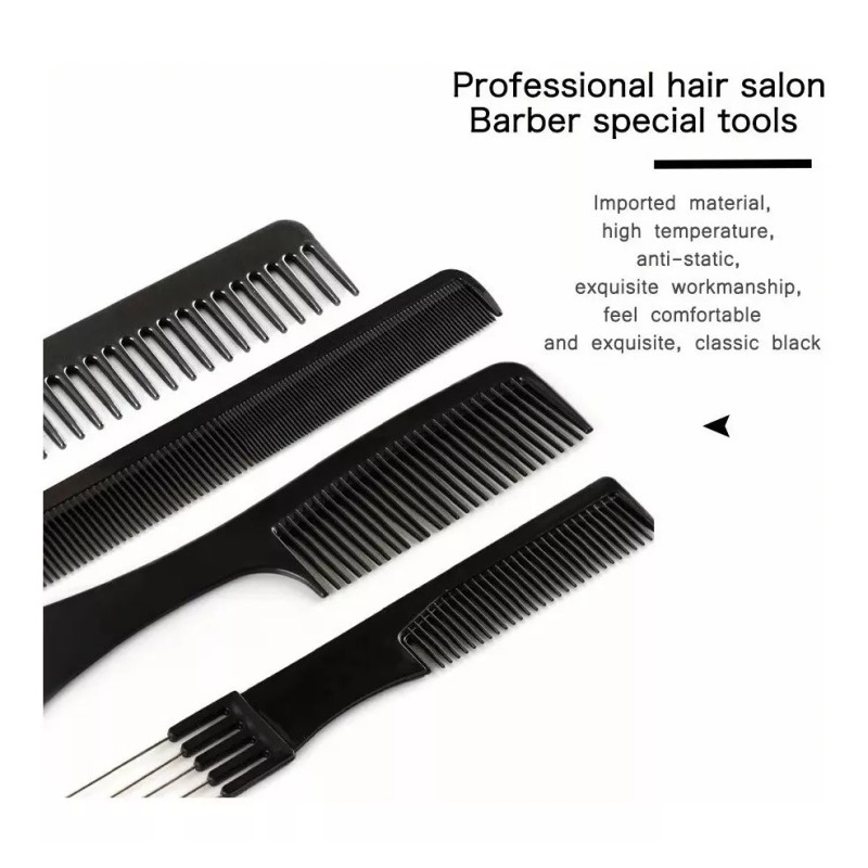 Juego profesional de 10 piezas, incluye todo lo que puedas necesitar, como peine de cola de rata, púas, levantadores, rastrillos de rizo, peines de burla, separadores y mucho más.