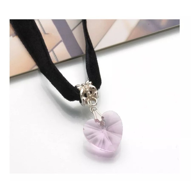 Launers Gargantilla Choker Terciopelo Negro Corazón De Cristal 4pzas