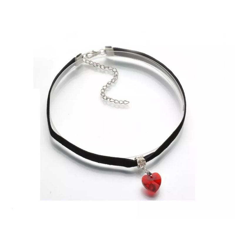Gargantilla Gótica de Terciopelo Negro con dije Corazón de Cristal