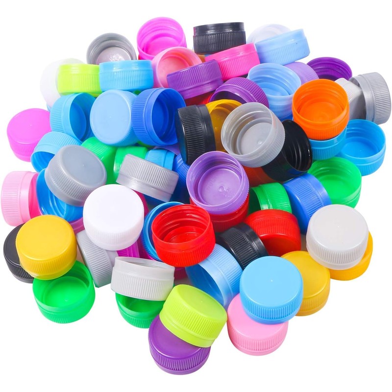 LAUQEE 100PCS Plastic Bottle Caps DIY Craft Environmental Protection Bottle Caps for Intelligence Development Stickes (Mixed Color)