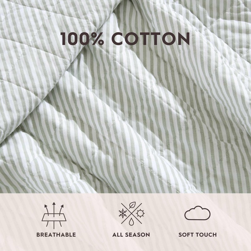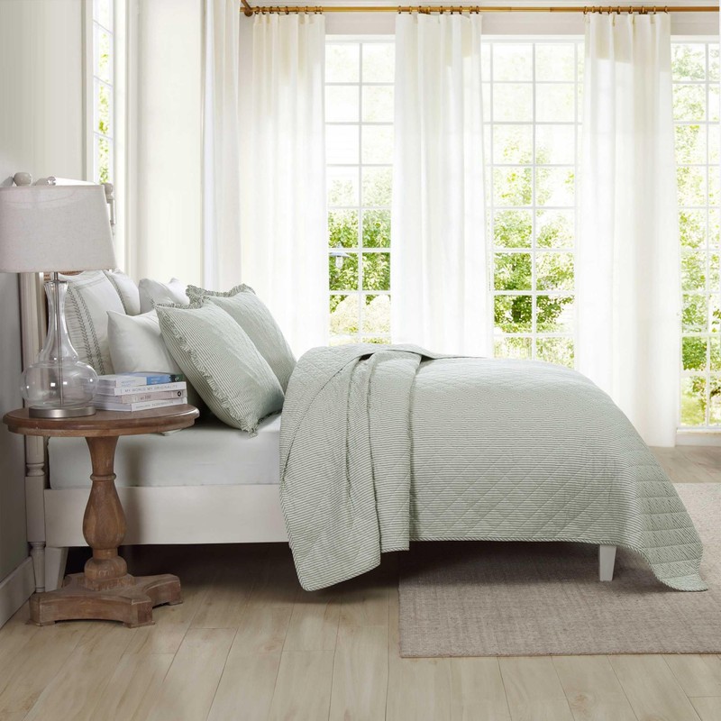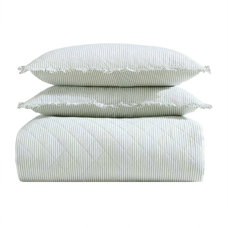 Laura Ashley - Full/Queen Quilt Set, Simple, Comfortable and Breathable Bedding with Matching Sham(s), Super Soft and Cozy Home Decor (Oxford Stripe Green, Full/Queen)