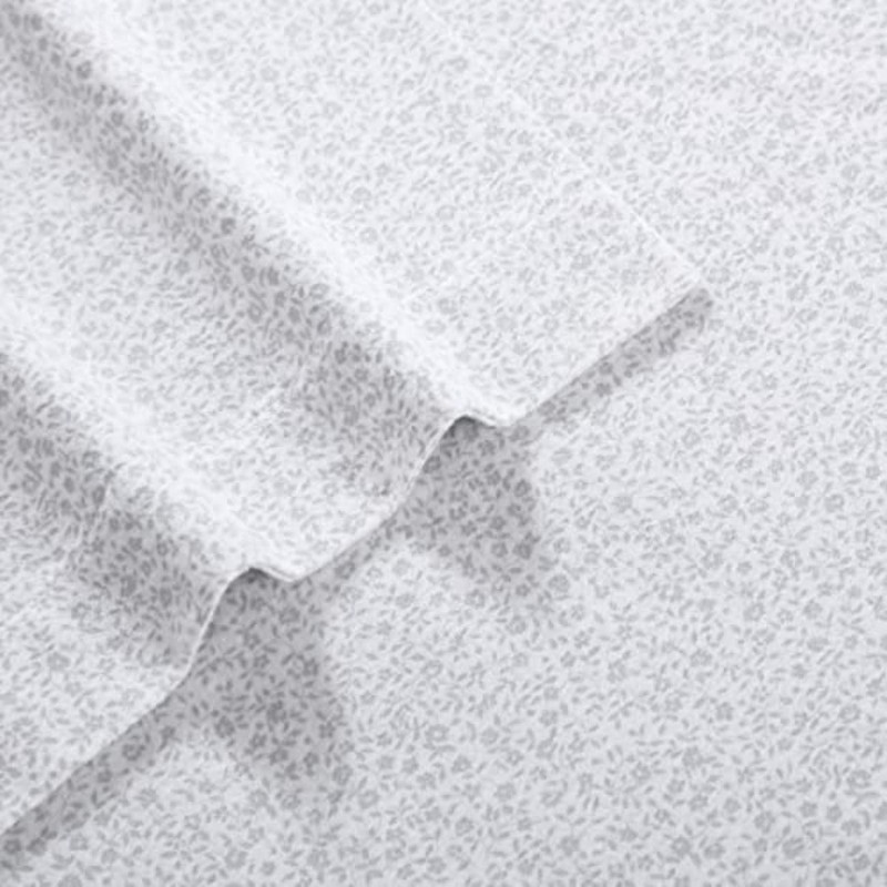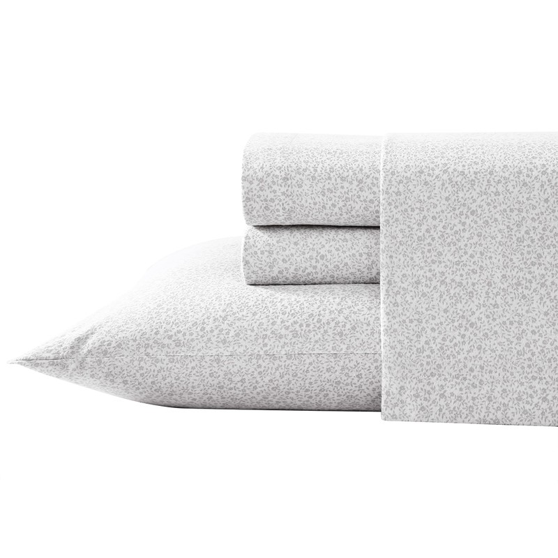 Laura Ashley Home - Queen Sheets, Cotton Flannel Bedding Set, Brushed for Extra Softness & Comfort (Chelsie Vine Grey, Queen)