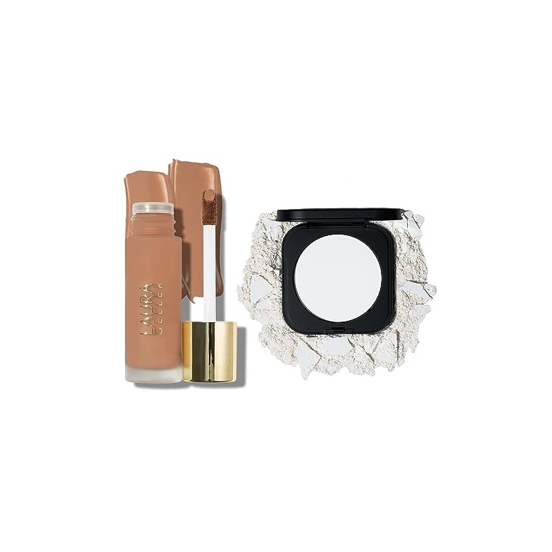 LAURA GELLER NEW YORK Double Take Liquid Natural Matte Foundation, Tan + Matte Maker Advanced Transulent Oil Blotting Powder