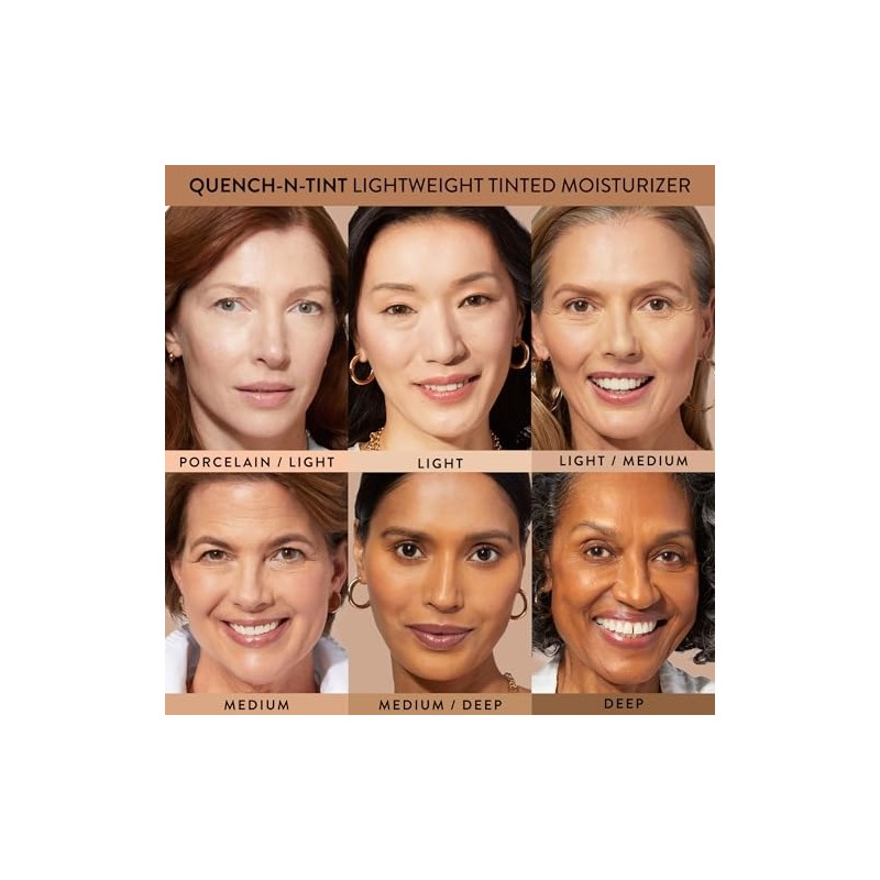 - QUENCH-N-TINT HYDRATING LIGHTWEIGHT COVERAGE HYLAURONIC ACID LIQUID FOUNDATION MAKEUP: Say goodbye to dry skin and hello to hydration! This lightweight foundation is the best of both worlds: sheer to coverage and a refreshing feel.