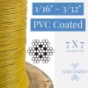 Laureola Industries 1/16" to 3/32" PVC Coated Yellow Color Galvanized Cable 7x7 Strand Aircraft Cabl - 50 ft