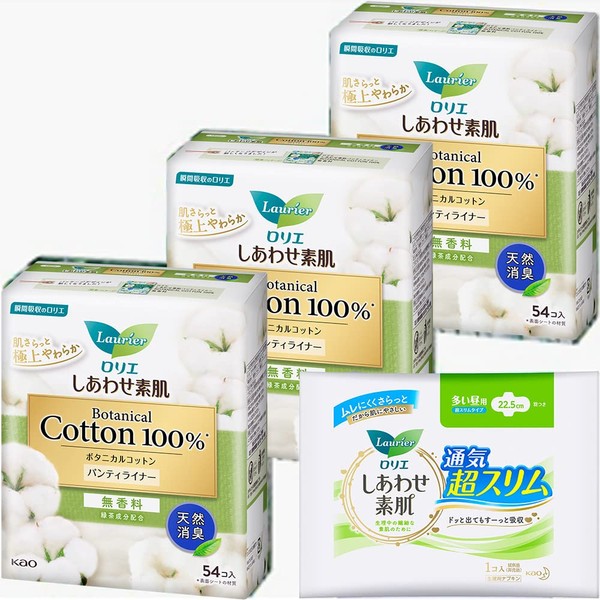 Laurier Happy Bare Skin Liner, Botanical, Deodorizing, 54 Pieces x 3 Sets (162 Pieces) + Bonus Included