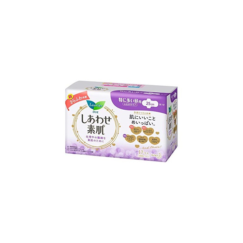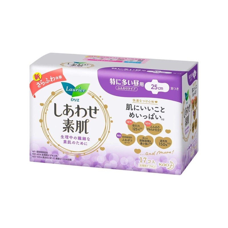 Laurier Shiawase Bare Skin Fluffy Type, Especially For Daytime Use, With Wings, 9.8 inches (25 cm), 17 Packs