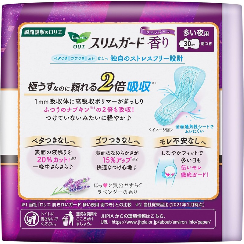 Laurier Slim Guard 300 Lavender Scent, For Heavy Nights, 14 Packs x 2 Pack, Bonus Included
