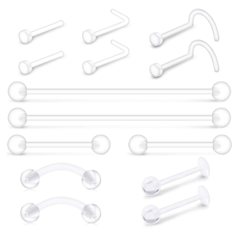 LAURITAMI Piercing Retainers Pack Clear Nose Stud Acrylic Bioflex Eyebrow Lip Labret Industrial Bar Barbell Multi-Shapes