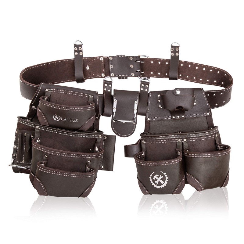 LAUTUS Oiled Tanned Rig Tool Belt/Pouch/Bag, Carpenter, Construction, Framers, Handyman, Electrician