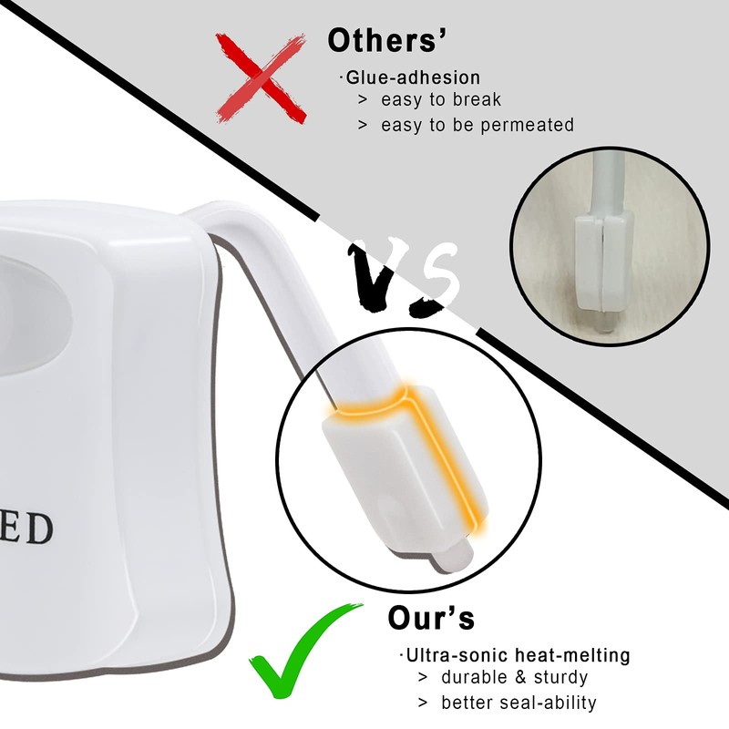 *8 Soft & Warm Changing Colors - This toilet light gives off 8 colors changing that are not too bright to overwhelm and disturb your body clock. Each color for 15 seconds randomly, 120 seconds overall for a circle, you can also fix one color you prefer.