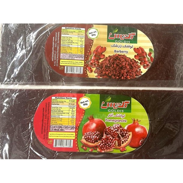 Lavashak Middle Eastern Dried Fruit Pack, Barberry and Pomegranate Fruit Sheets, 90g Each, 10 Count