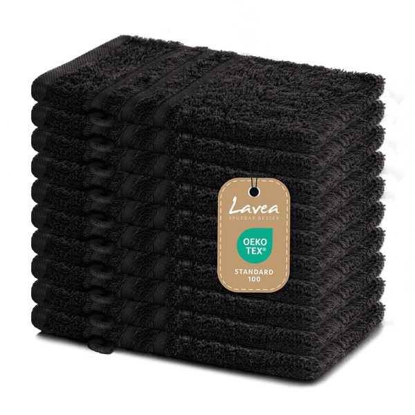 Lavea Set of 10 Elena Terry Series Washcloths, 15 x 21 cm, Black