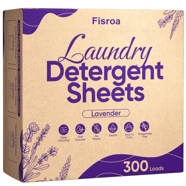 Lavender Laundry Detergent Sheets Travel Eco-friendly 300 Loads Fisroa Clothes Washing Detergent Sheets Plastic-Free Washer Strips Liquidless Laundry Strips Tablet